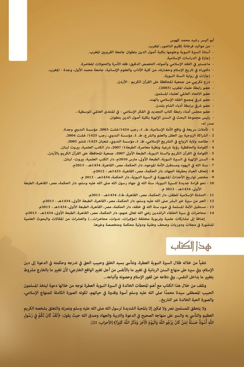 نتفيأ من خلاله ظلال السيرة النبوية العطرة، ونتأسى بسيد الخلق وحبيب الحق في تدرجه وحكمته في الدعوة إلى دين الإسلام، وفي سيره على منهاج السنن الربانية في تغيير ما بالأنفس من أجل تغيير الواقع الخارجي؛ لأن تغيير ما بالخارج مشروط بتغيير ما بداخل النفس.. وفي دفاعه عن ثغور الإسلام وحصونه وأتباعه...